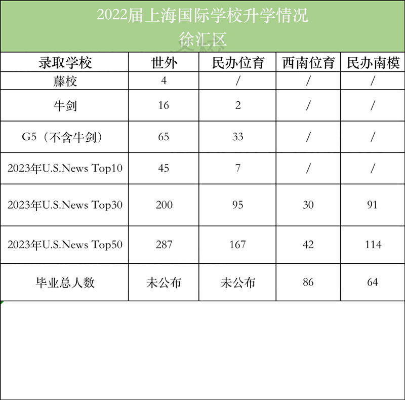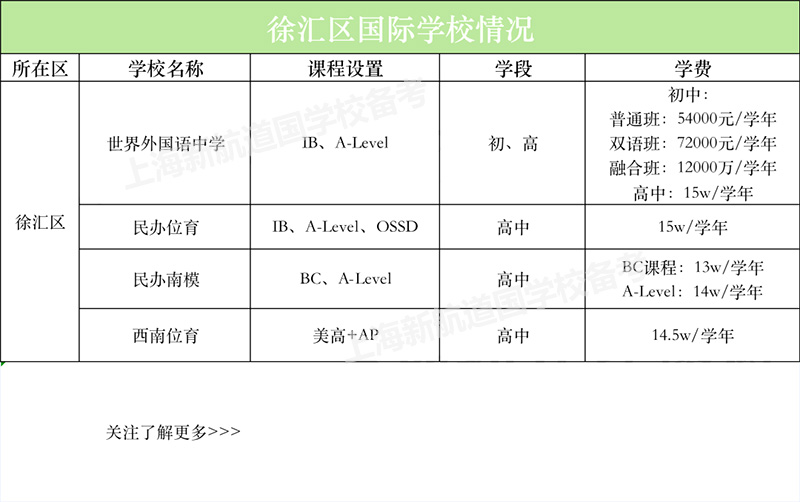 以上就是徐汇区几大国际高中的情况了,往美国方向世外、位育都是不错的选择,往英国方向世外近几年成绩一直非常好,往加拿大方向这四所学校都不错。