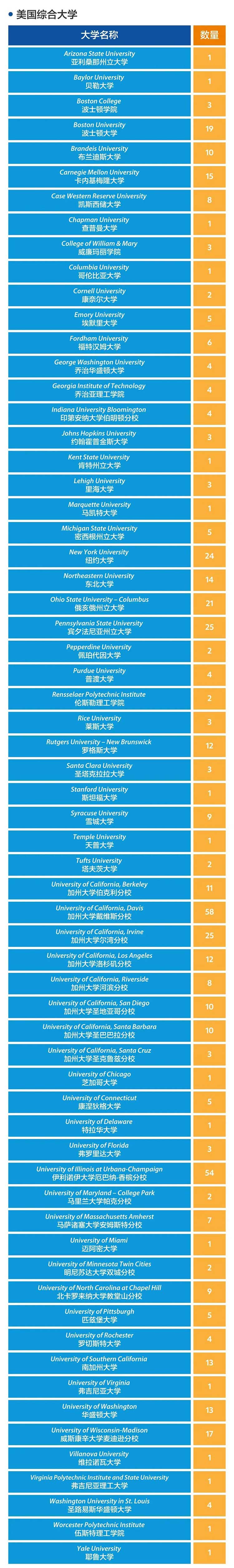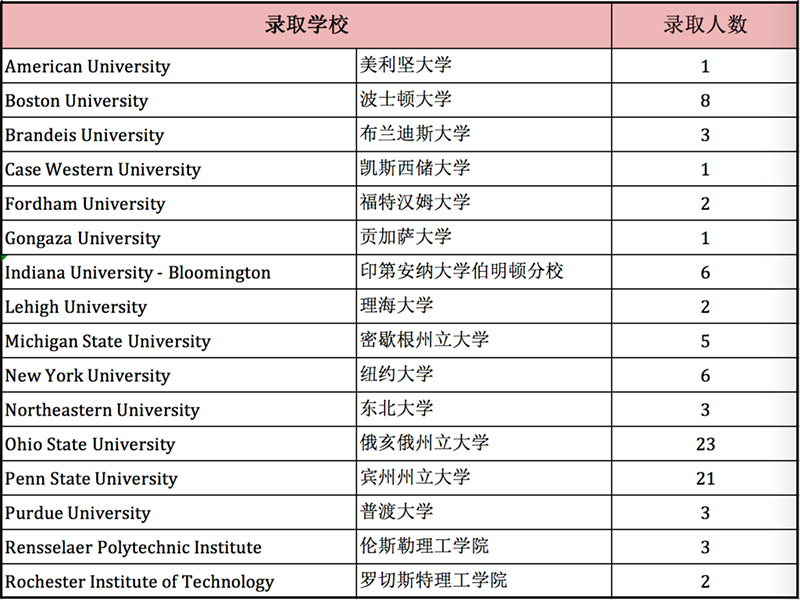 美国方向:6枚纽约大学、8枚波士顿大学、3枚加州大学圣地亚哥分校、3枚匹兹堡大学。