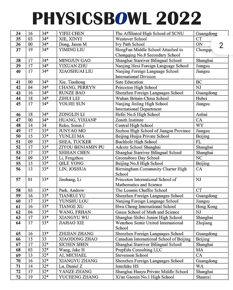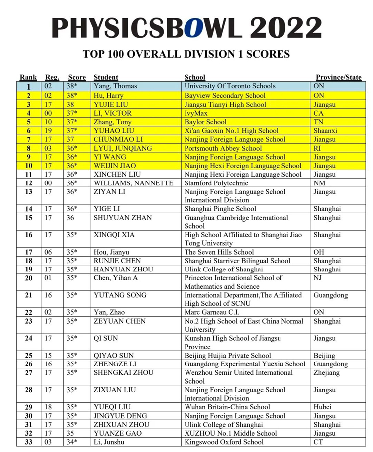 物理碗官方曾公开了两份全球TOP100高分段学生名单,中国学生的数量非常可观。