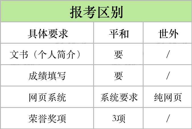 世外报考 门槛明显就没有平和这么复杂,不需要写文书,也没有标化要求,纯网页填报。但要注意,世外只能报考一次。