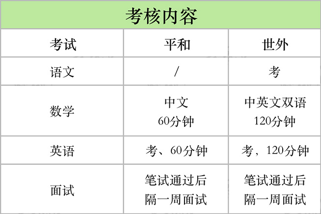 从考核内容上看,世外比平和多考一个语文。