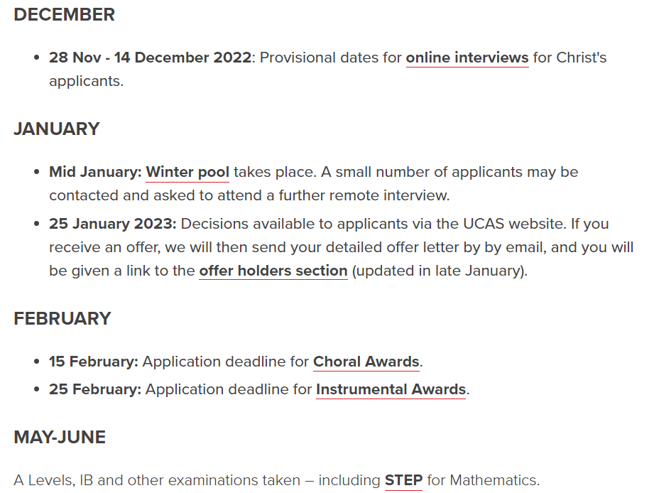 Robinson College、Pembroke College、Corpus Christi等学院于2023年1月初至1月中旬发放offer结果。