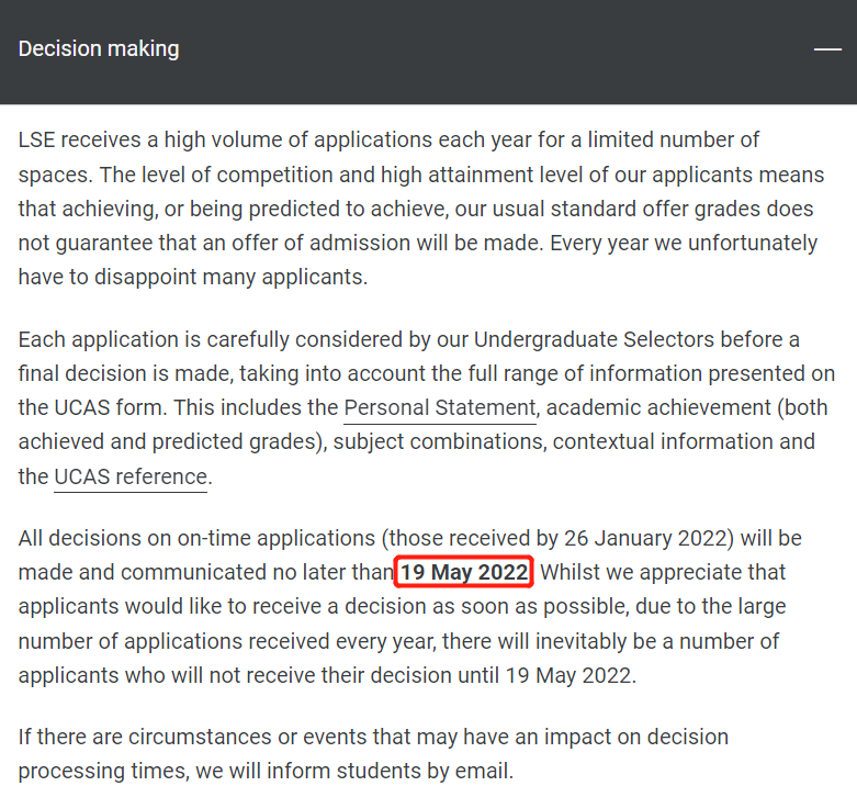 伦敦政治经济学院虽然发放offer慢,但发起拒信却很迅速,已经有学生收到拒信了。
