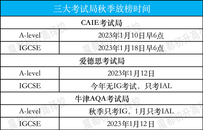 秋季大考放榜后,将迎来2023年首场大考,而三大国际考试中,CIE考试局不提供1月考试,只有爱德思和牛津AQA是提供1月考试的。