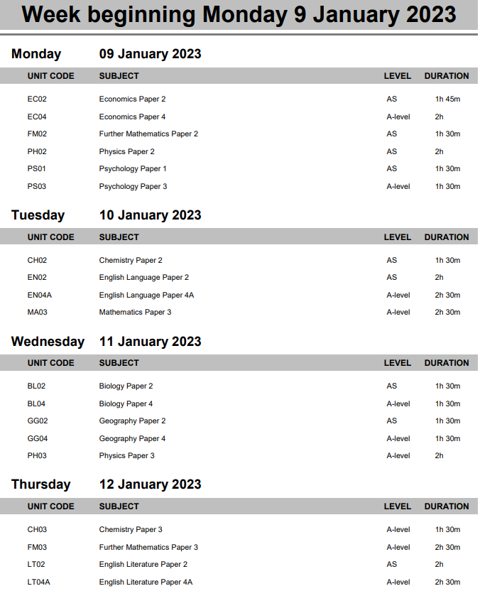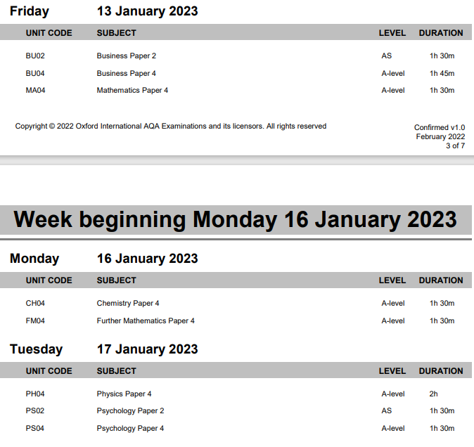 爱德思1月份提供IGCSE和A-Level考试,牛津AQA1月份只提供A-Level考试,这两大考试局1月份大考放榜时间也一致,都将在2023年3月1日下发成绩给中心,3月2日下发给考生。