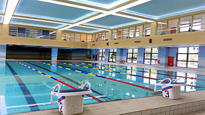 运动设施:标准体育场、游泳馆、室内外篮球场、乒乓房