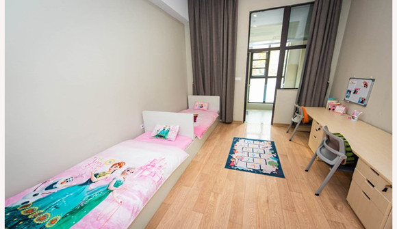 为了保证集体生活的合理社交和居住舒适度,学校宿舍为两人一间。每个房间都配备空调和空气净化器,以及采光充足的窗户,为孩子们提供舒适明亮的居住环境。
