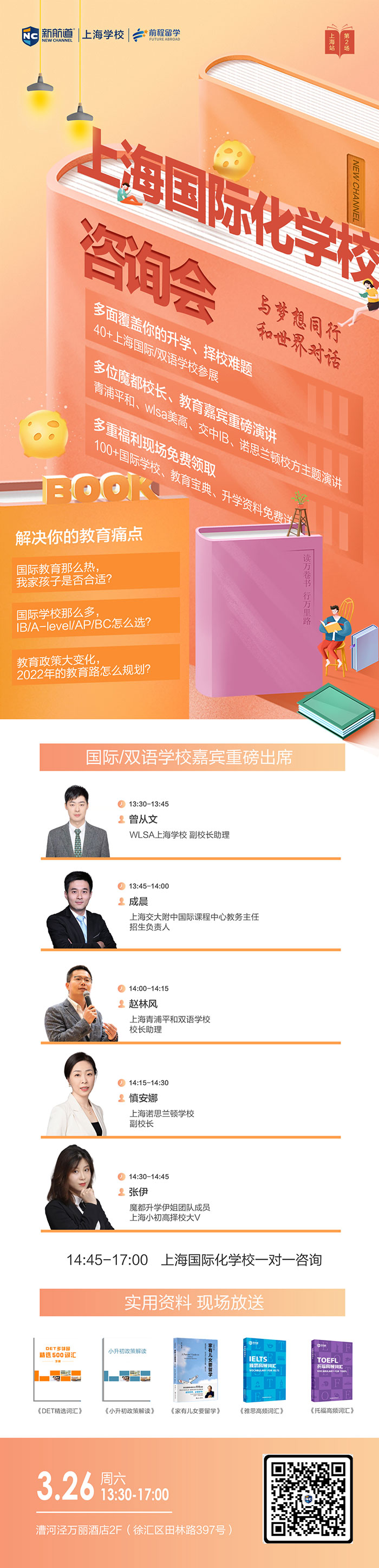 讲座简介:曾从文 WLSA上海学校副校长助理 成晨 上海交大附中国际课程中心教务主任招生负责人 赵林风 上海青浦平和双语学校校长助理 慎安娜 上海诺思兰顿学校副校长 张伊 魔都升学伊姐团队成员上海小初高择校大V