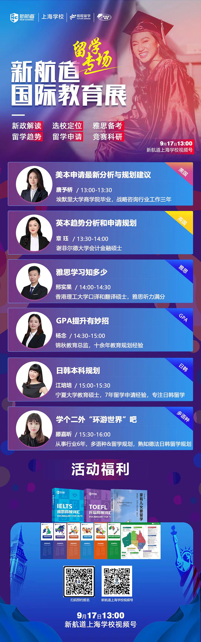 【讲座主题】:9月17日留学专场 新航道物国际教育展