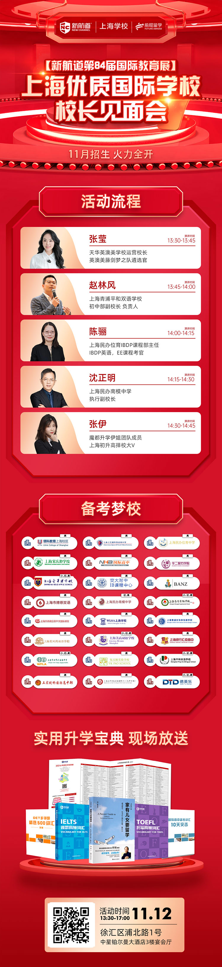 【讲座主题】:[新航道第84届国际教育展] 上海优质国际学校 校长见面会