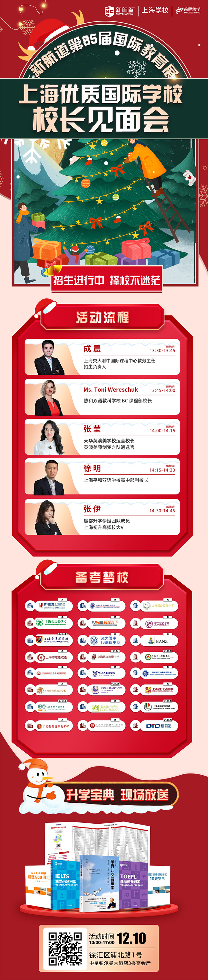 【讲座主题】:新航道第85届国际教育展 上海优质国际学校校长见面会 招生进行中择校不迷茫