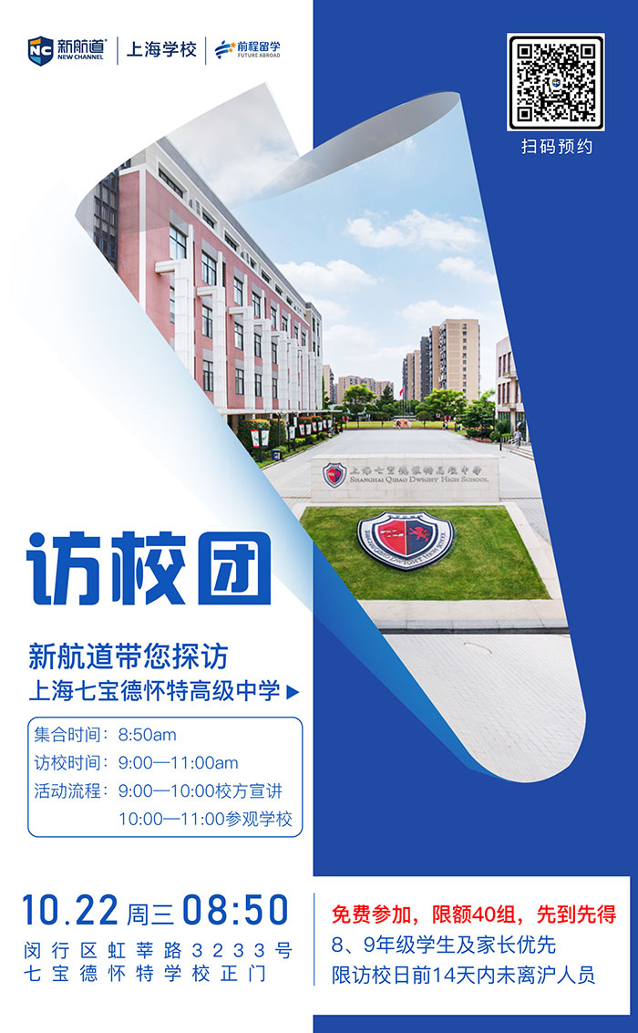 本文标题:10.22上海七宝德怀特高级中学校园开放日预约中....