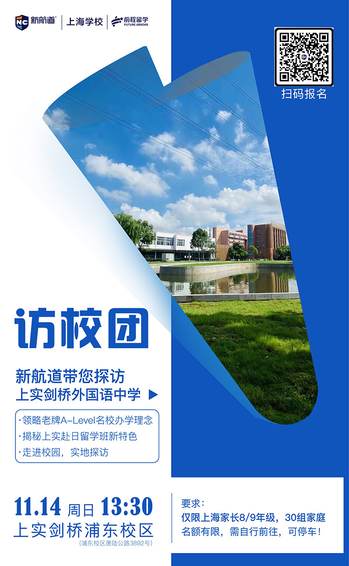 【讲座主题】:11.14访校团新航道带您探访 上实剑桥外国语中学>>>