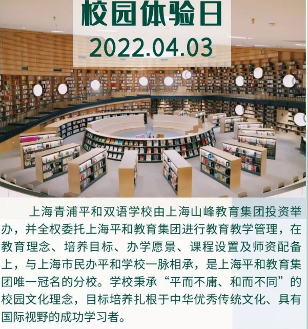 【讲座主题】:2022年4月3日上海青浦平和双语学校幼升小校园体验日