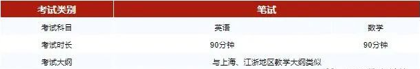 考试科目:英语(90分钟)、数学(90分钟)、英文面试(10-15分钟)