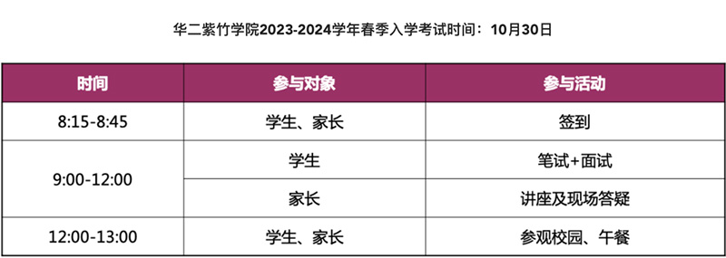 【讲座主题】:招生公告 | 华二紫竹学院2023年春季招生校园开放日(10月30日)