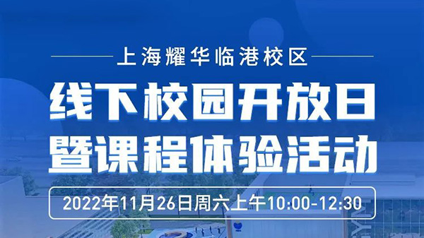 【讲座主题】:11/26临港耀华校园开放日暨课程体验活动重磅来袭!上海