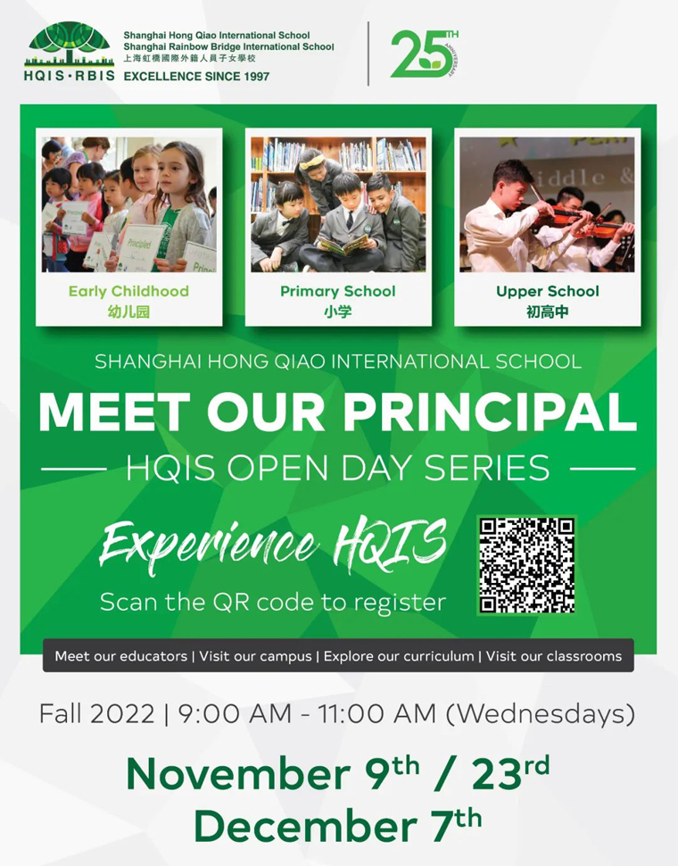 HQIS 2022-2023学年校园开放日活动报名正式开启,欢迎感兴趣的家庭报名参加。