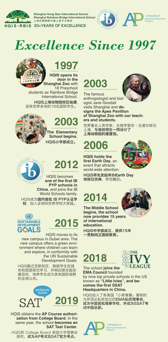 上海虹桥国际外籍人员子女学校成立于1997年,是上海最早的国际学校之一,也是上海最早一批受IBO认证的IB世界学校。