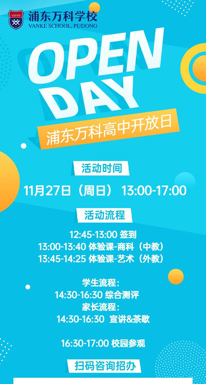 本文标题:报名 | IG预备班招生!11月27日浦东万科高中校园开放日预约中