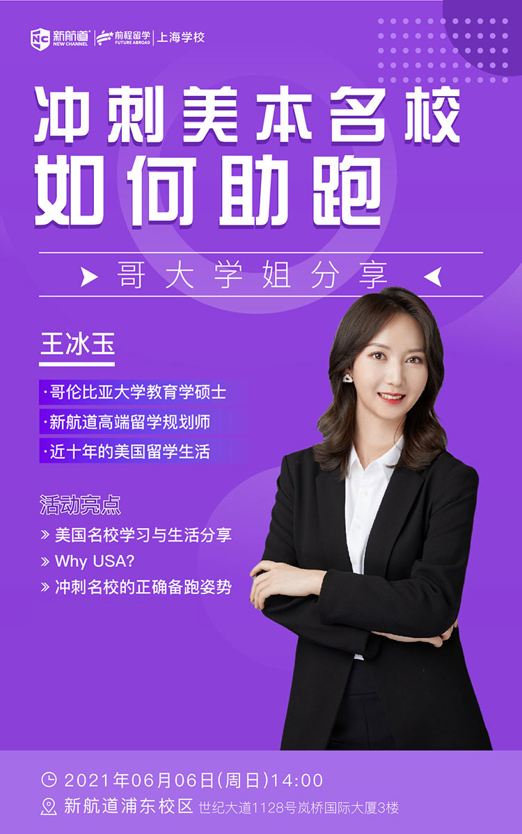 【讲座主题】:冲刺美本名校如何助跑 哥大学姐分享