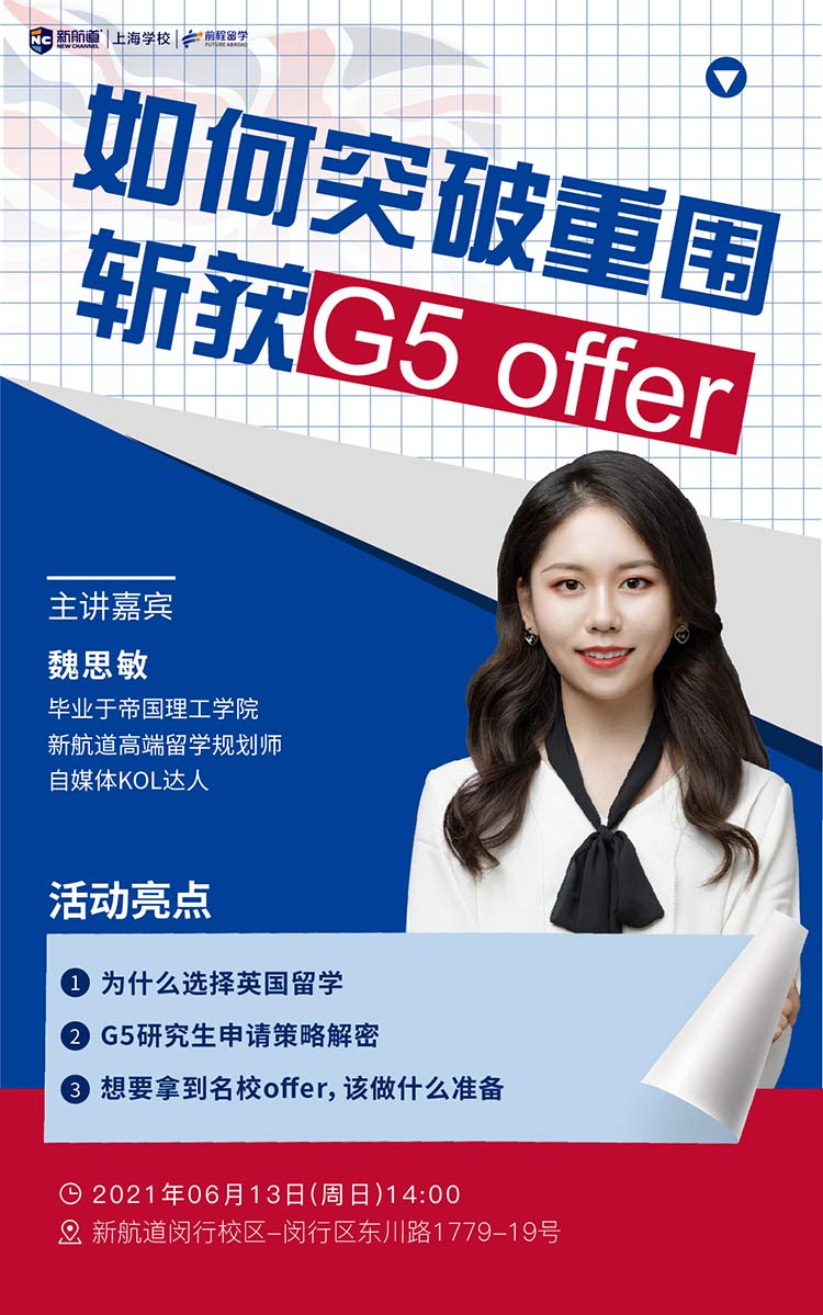 讲座简介:主讲嘉宾 魏思敏 毕业于帝国理工学院 新航道高端留学规划师