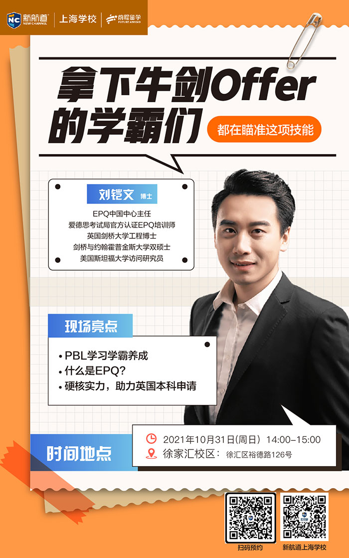 讲座简介:刘铠文:博士EPQ中国中心主任 爱德思考试局官 剑桥与约翰霍普金斯大学双硕士美国斯坦福大学访问研究员 英国剑桥大学工程博士 方认证EPQ培训师