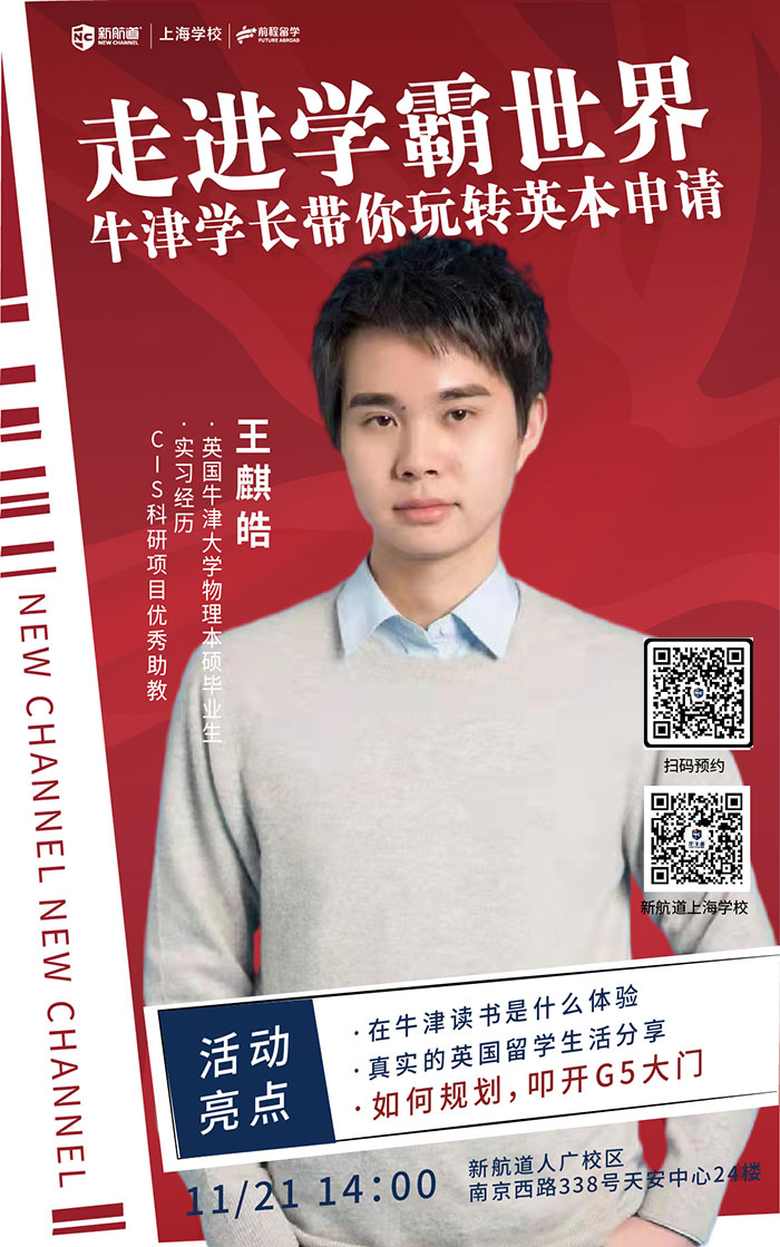 【讲座主题】:走进学霸世界 牛津学长带你玩转英本申请