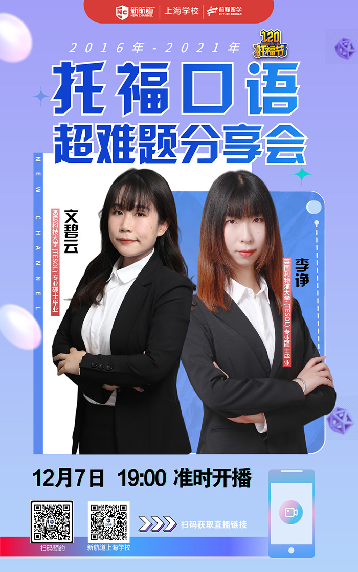 【讲座主题】:2016年-2021年 托福口语 超难题分享会