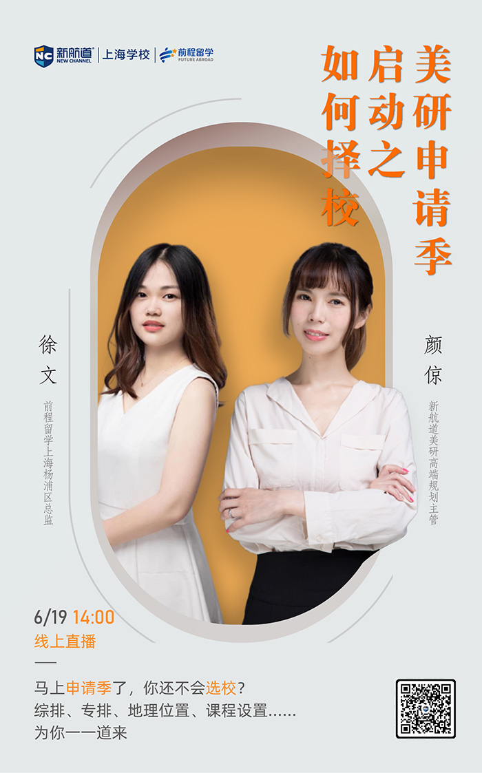 讲座简介:颜倞 新航道美研高端规划主管 徐文 前程留学上海杨浦区总监