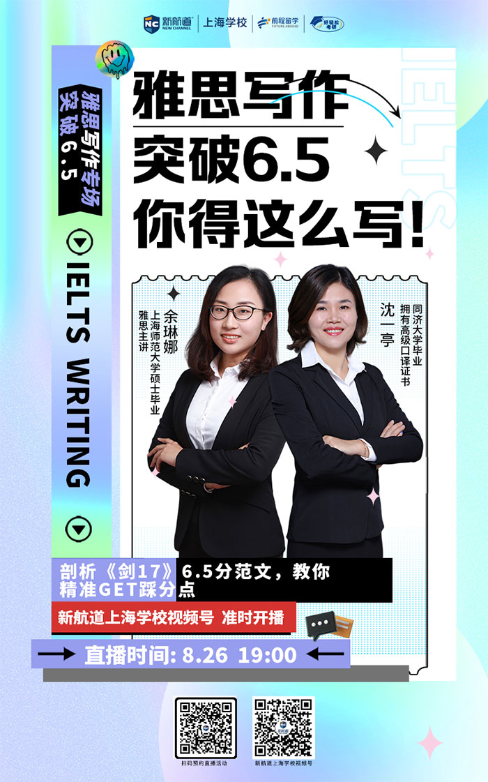 讲座地点:新航道上海学校视频号准时开播