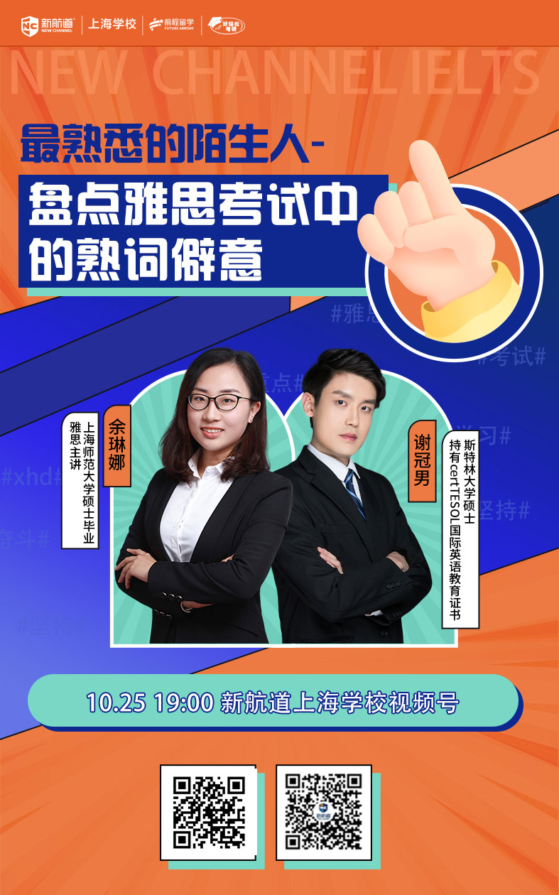 【讲座主题】:最熟悉的陌生人-盘点雅思考试中的熟词僻意