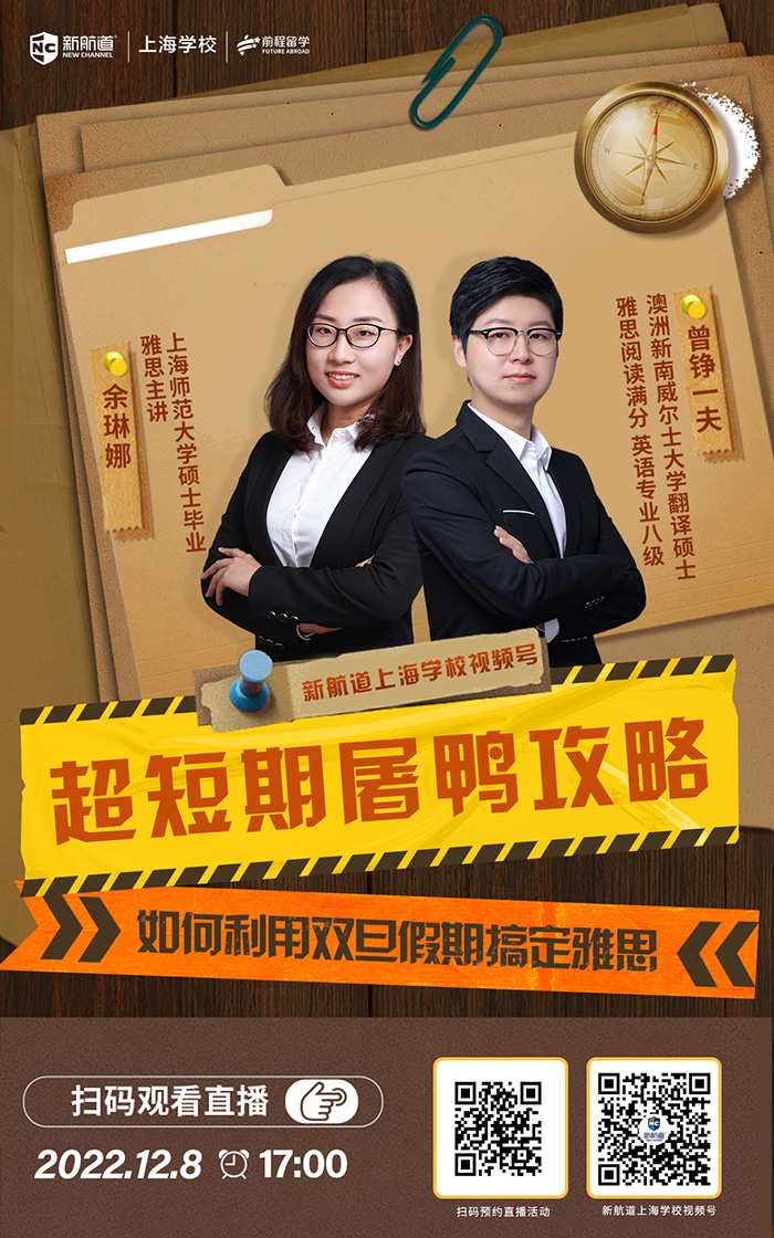 讲座简介:曾铮一夫:澳洲新南威尔士大学翻译硕士 雅思阅读满分 英语专业八级 余琳娜:上海师范大学硕士 毕业 雅思主讲