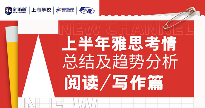新航道上海学校视频号 2022/7/1 14:00主题:上半年雅思考情总 结及趋势分析 阅读/写作篇