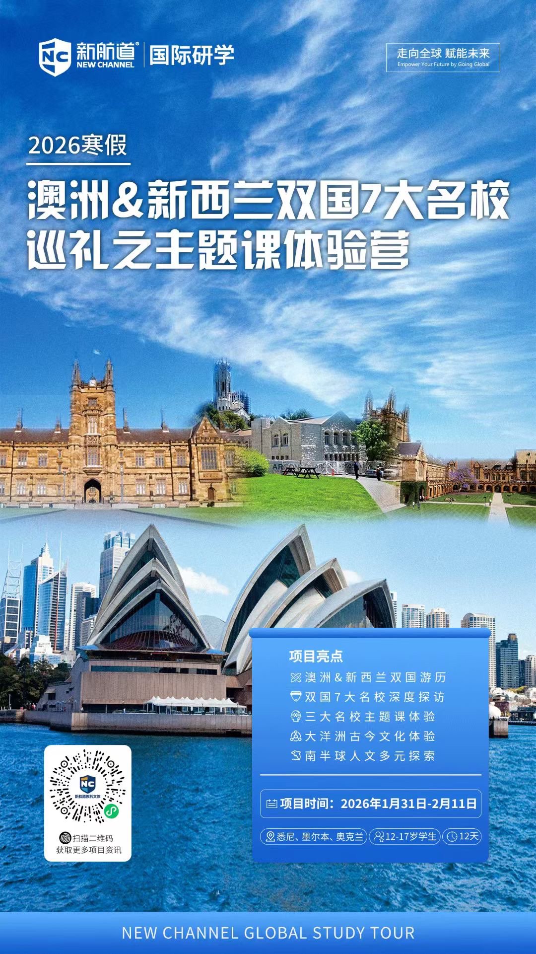 本文标题:2026寒假澳洲&新西兰双国7大名校巡礼之主题课体验营