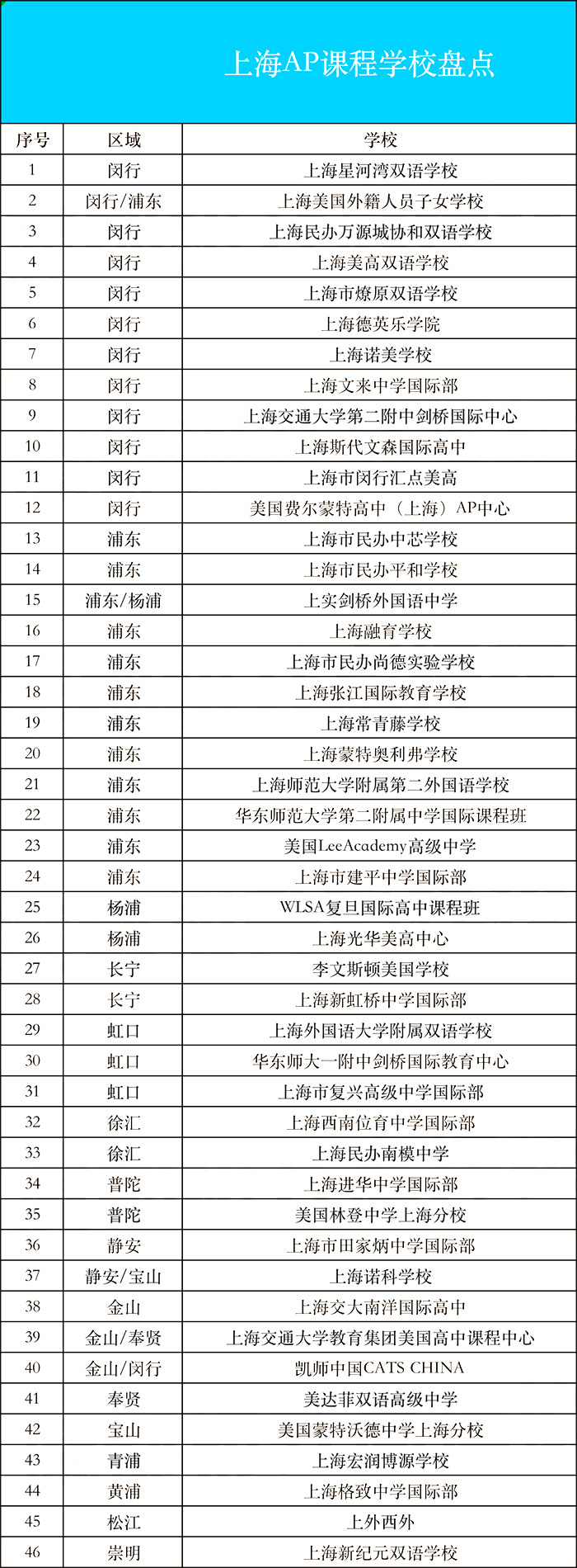 上海目前有超过40多所学校开设AP课程,知名度较高、较为老牌的AP学校有星河湾、WLSA上海、上海美国外籍人员子女学校等。