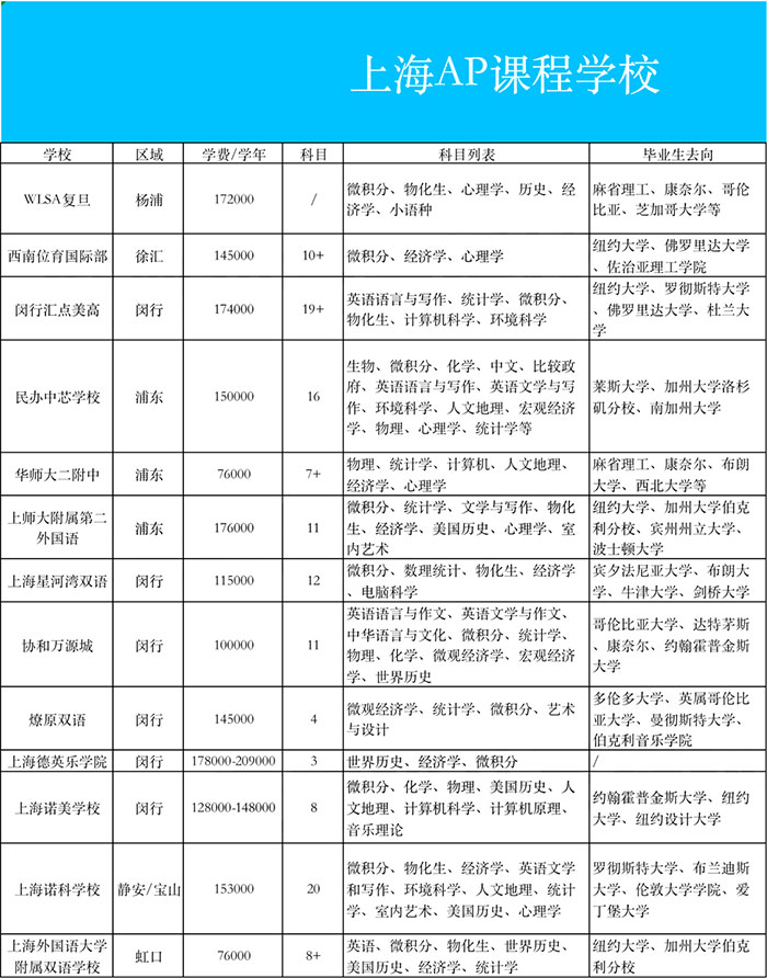 上海有哪些学校开设AP课程