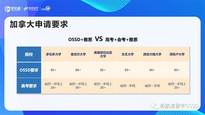 OSSD(Ontario Secondary School Diploma)就是加拿大安大略省中学课程体系,全球四大国际课程体系之一,OSSD直申全球160+国际和地区的大学,注册加拿大安省学籍,毕业获得安省教育局官方毕业证。具有很强的全球适用性。