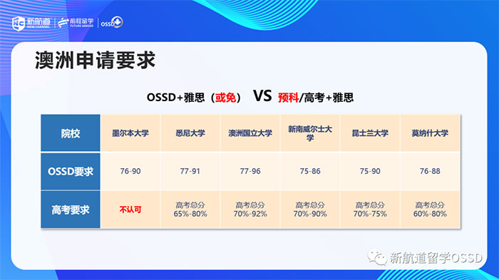 但是根据最新的学校政策,明年想要入读澳洲院校的OSSD学生得毕业后才能申请,所以建议同学们最晚明年5月毕业后再去申请。