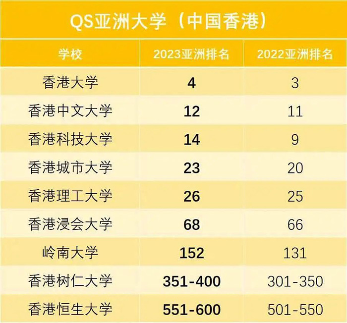 进入排名的港校,有细微变化,就拿港前三来说,香港大学从去年的第3来到了第4;香港中文大学从去年的第11来到了第12,香港科技大学从去年的第9,今年来了第14。