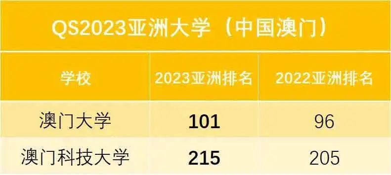 澳门上榜的两所大学,澳门大学提升5名,排在101;澳门科技大学稍降10名,排在第215名。
