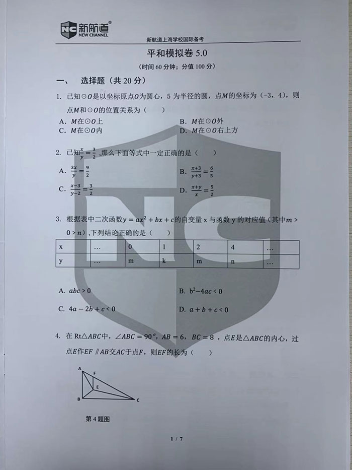 前段时间上海平和双语5月29日进入了招生考试;入学考试科目:语文、数学、英语。今天为大学带来了 新航道上海平和双语国际高中入学模拟考试数学卷小部分内容。