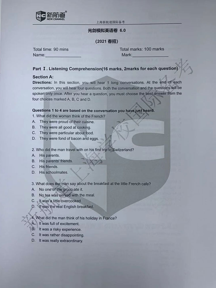 2021年上海光华剑桥春招入学考试英语卷(模拟卷) 。此套模拟题一共十几页,由于试卷是内部资料,且今年新题,不方便全部呈现。备考的同学们做个了解吧。