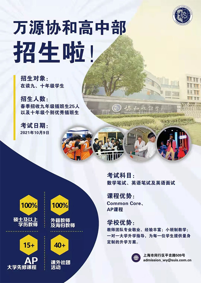 【讲座主题】:2021年10月9日春招万源协和高中部招生考试安排