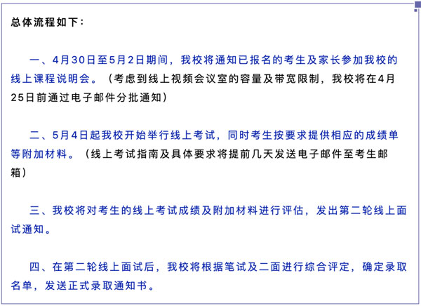 面试安排:对考生的线上考试成绩及附加材料进行评估后,发出第二轮线上面试通知。