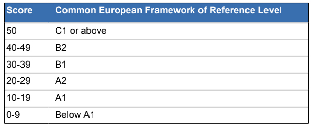 CEPT测试的分数对标CEFR Level(全球语言测试公认的权威体系),满分为50分。