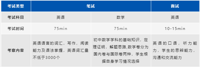 上海阿德科特学校入学考试分为笔试(英语,数学)、面试(英语)两部分。