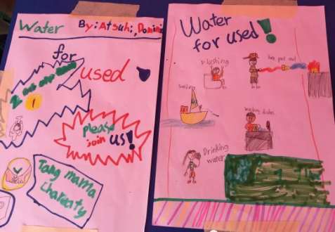 2.学生们努力肩负起世界公民的责任,创立了以“环保”为主题的摊位,宣传保护地球家园的理念。他们用可回收材料制作工艺品,以“合理利用水资源”为主题制作宣传海报,邀请人们展开相关讨论……