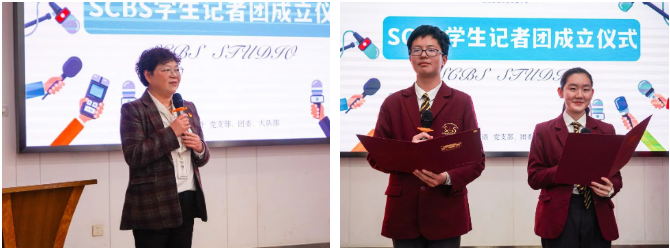 在成立仪式上,我校党支部书记兼副校长潘文光女士为成员们阐述了在当下成立记者团的意义,同时向各位小记者们表达了自己的期许,希望同学们厚积薄发,以青春与责任的名义,发出年轻而有价值的声音。