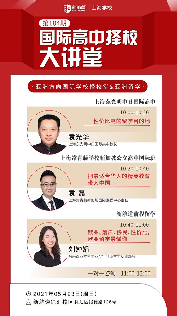 【讲座主题】:第184期 国际高中择校大讲堂 亚洲方向国际学校择校堂&亚洲留学
